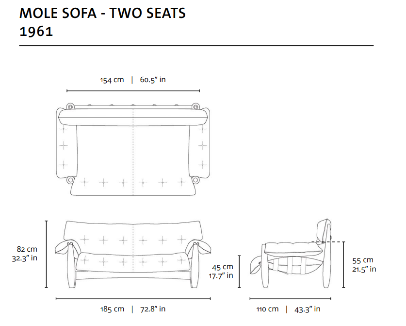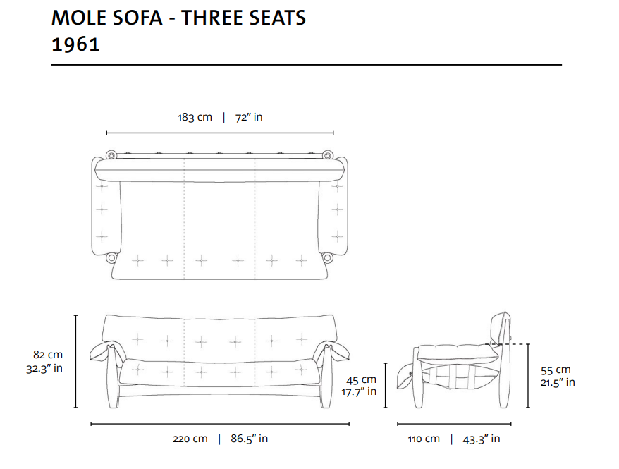 He wanted a sofa in his studio to spread out like a sultan and Sergio Rodrigues responded with a robust, comfortable sofa that expresses Brazil in trait and identity – the Mole sofa.