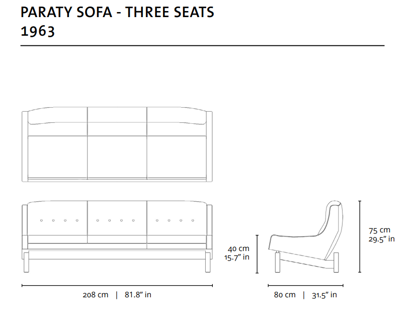 • 81.8” x 31.5” x 29.5”h (inches)* - Three Seats