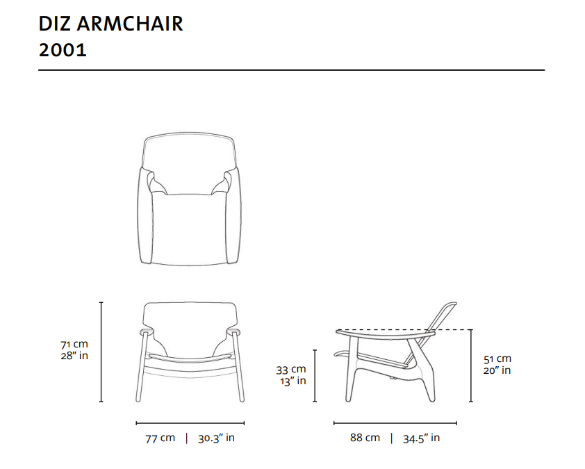 The Diz armchair was born in 2001, already a classic. In it Sergio Rodrigues expresses the maturity of his design. “Its wooden structure is well resolved and masterfully crafted. In addition, it is an extremely comfortable and beautiful piece, whatever the angle of view” considered the jury in 2006 for the Museu da Casa Brasileira Design Award, in which the armchair won first place.