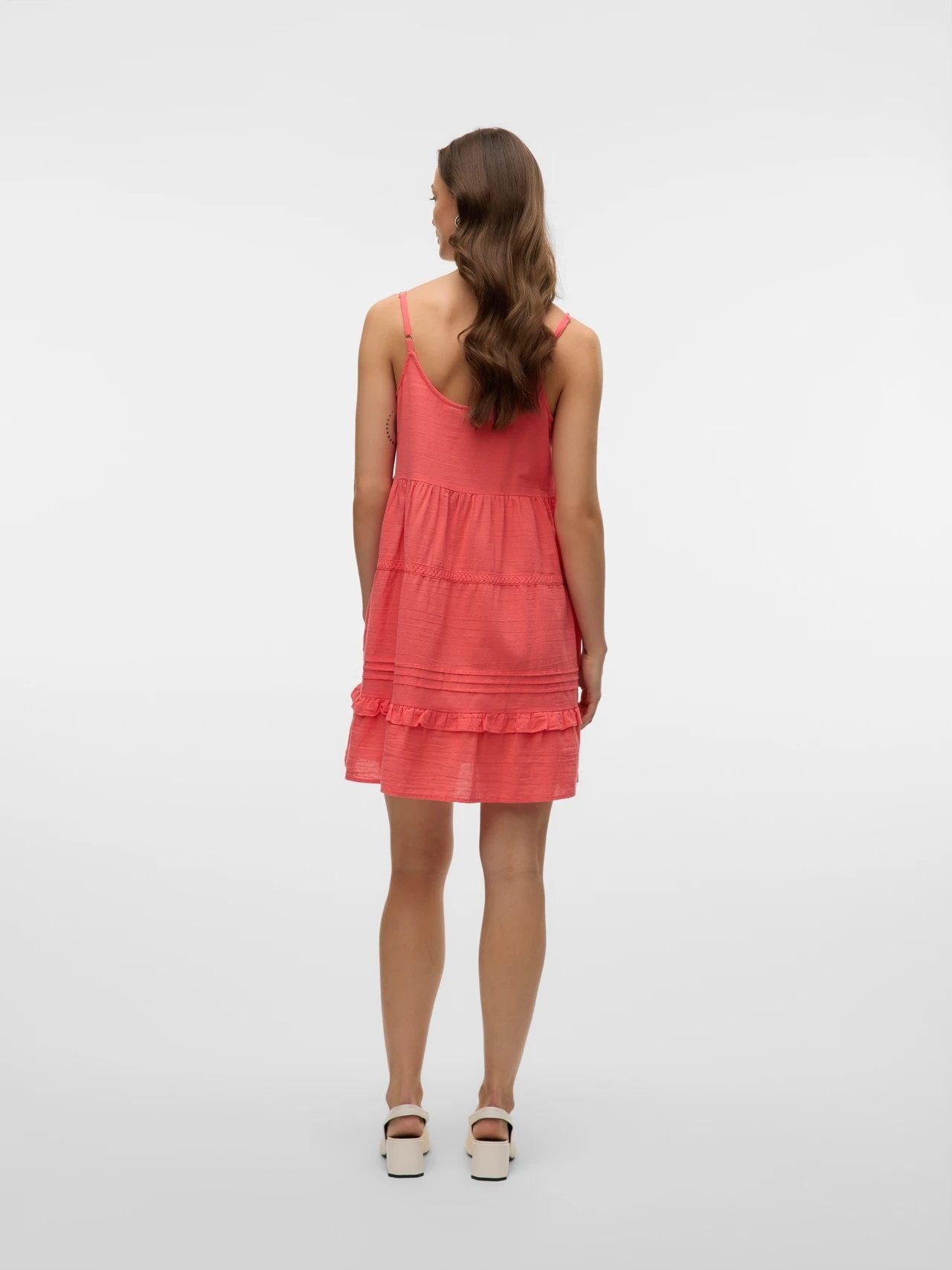 Bring fresh femininity to your wardrobe with the Vero Moda Organic Cotton Lace Dress — a charming blend of softness, simplicity, and subtle detail. Cut in a regular fit with a sleeveless design and a classic round neckline, this short dress is ideal for warm days and easy layering.