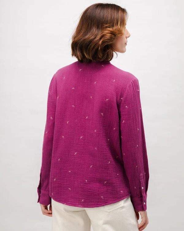 Our elegant long-sleeved blouse will add a very distinctive touch to your fits. With a mao shirt collar, no front placket and a back yoke, this printed slim fit blouse will be a must-have for your wardrobe. Ethically made with organic cotton.