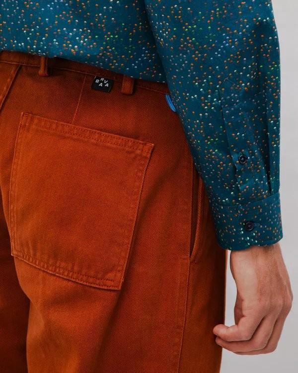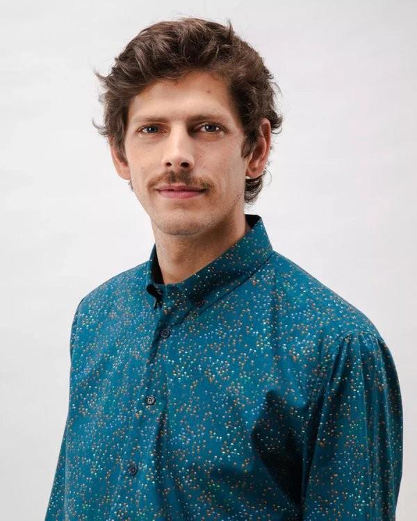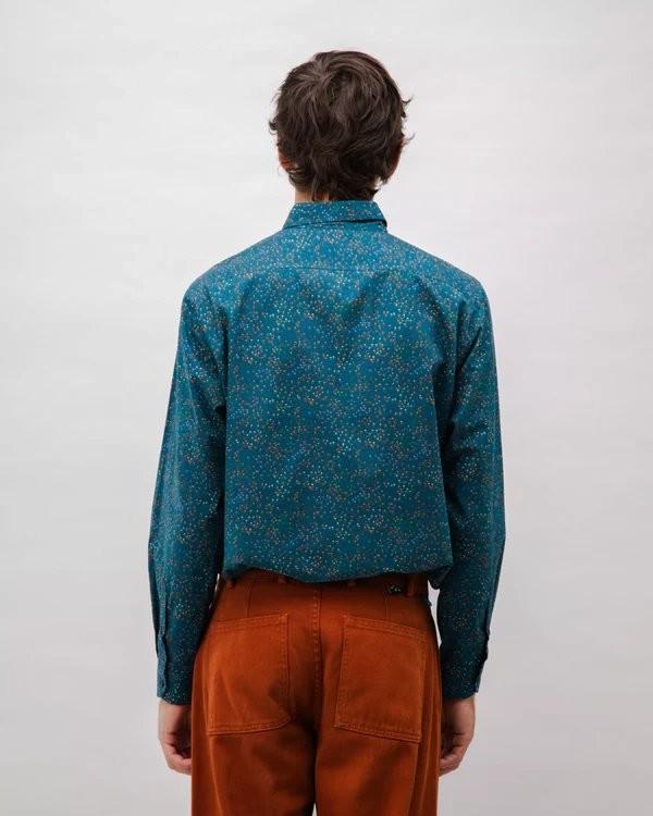 Long-sleeved printed shirt, with a regular fit and straight cut, featuring a decorative detail on the sleeve hem. It has a dropped armhole, shirt collar, and front closure with buttons. Ethically made from organic cotton.