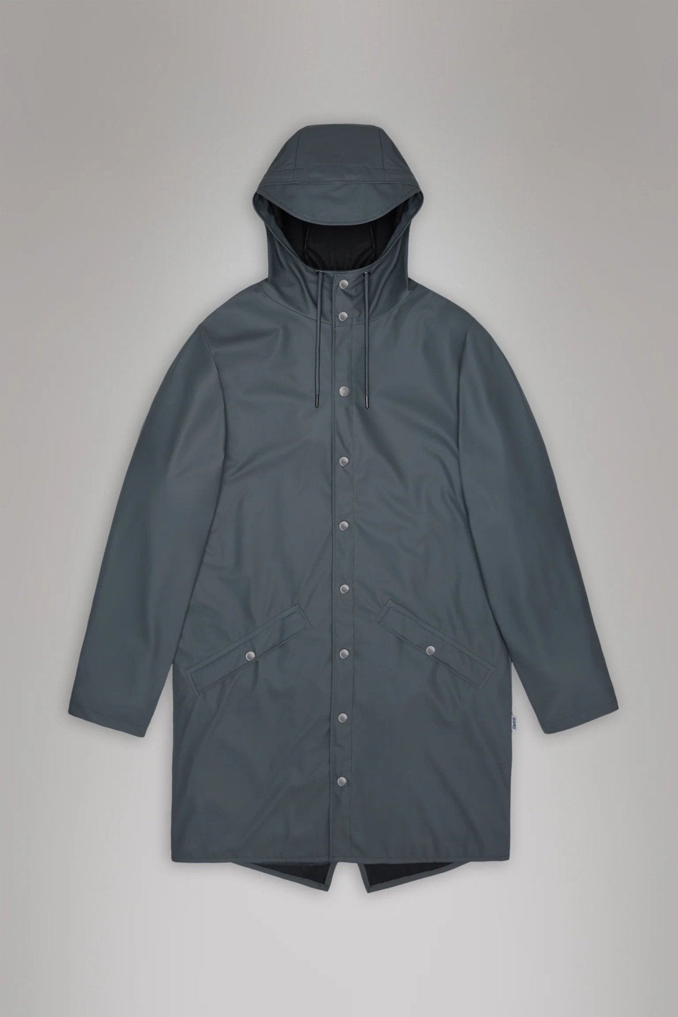 Long Jacket is a longer version of Rain’s classic design, Jacket. This ever-contemporary unisex rain jacket delivers high functionality in a minimal silhouette. Features include double welded slanting flap pockets, adjustable cuffs and a fishtail hem. The look is finished with snap fastenings, under-arm eyelets, and a back yoke with concealed vents.