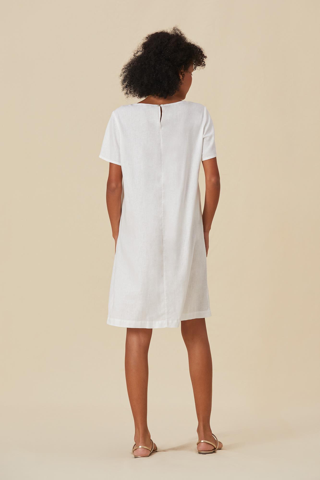 Dress made in flat linen viscose fabric. Nice touch and great fit. Rustic and fresh look, very characteristic of the natural fibre.