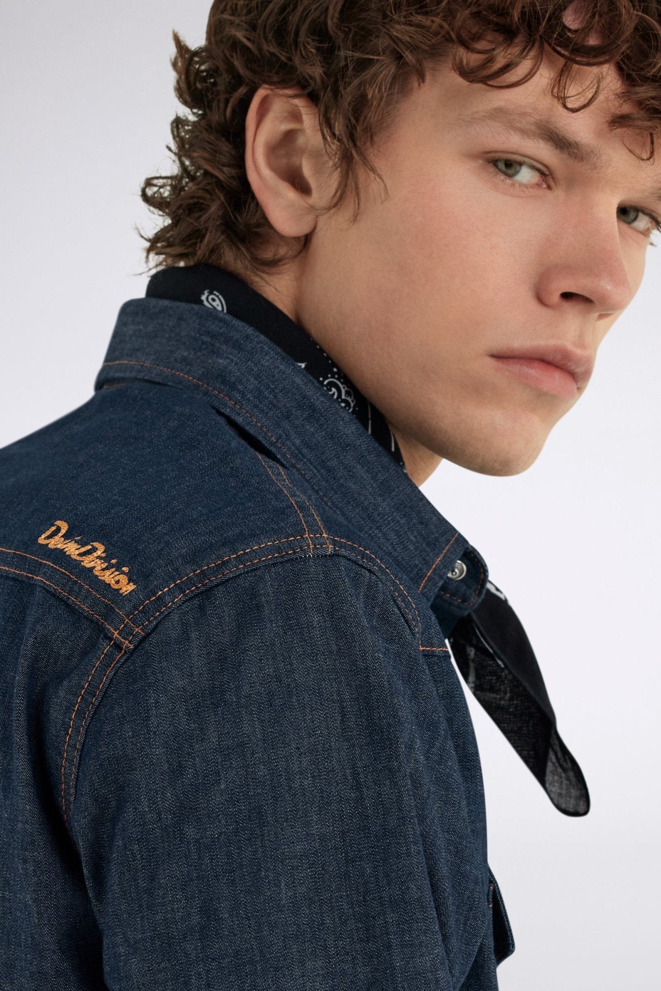This stretch denim shirt 5.60 OZ features a clean rinse wash that enhances the deep blue of the fabric. The regular fit ensures comfort and versatility, while the contrast embroidery on the right shoulder adds personality. The western-style pockets complete the design with a nod to heritage aesthetics reinterpreted in a modern key.