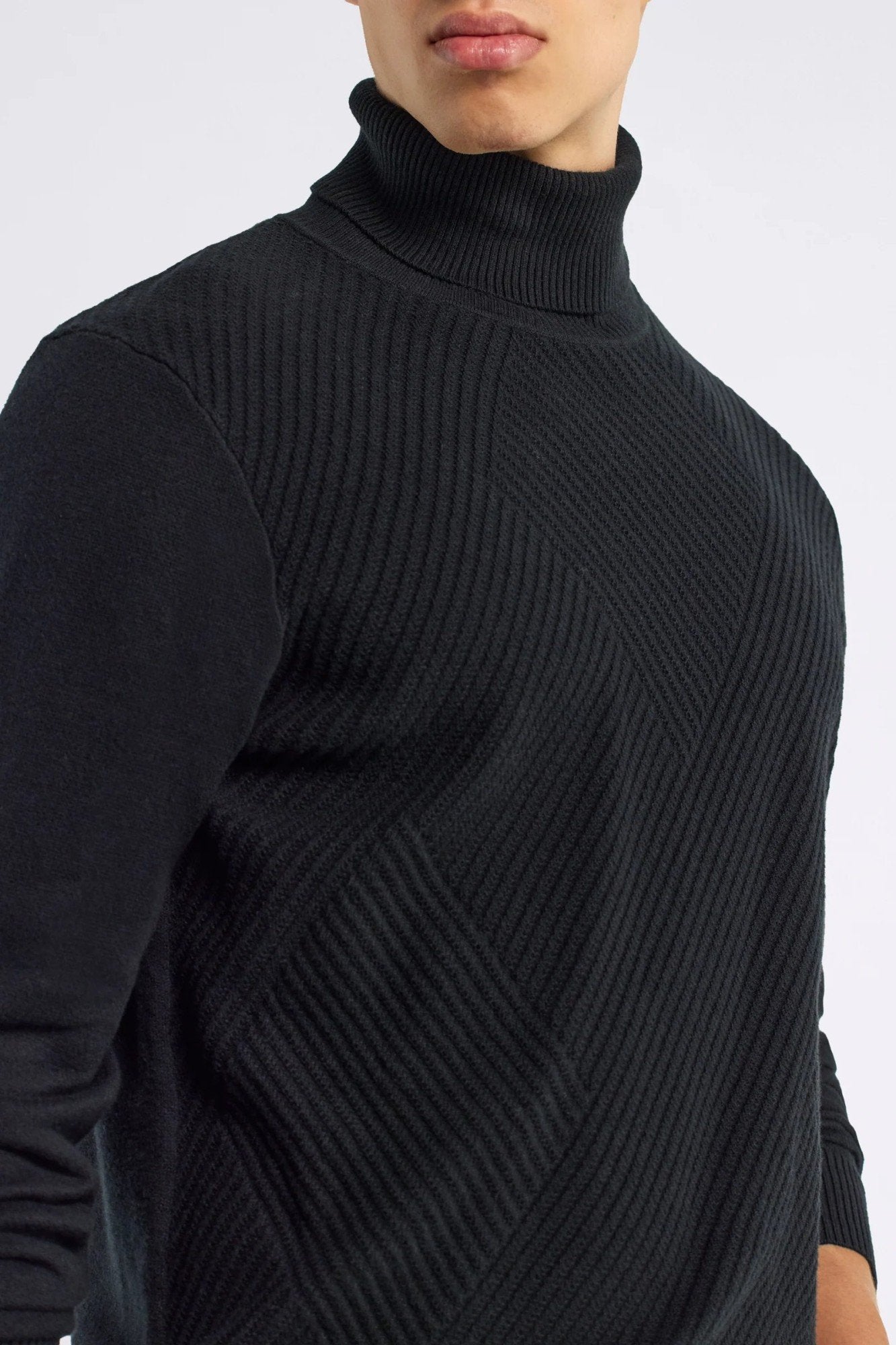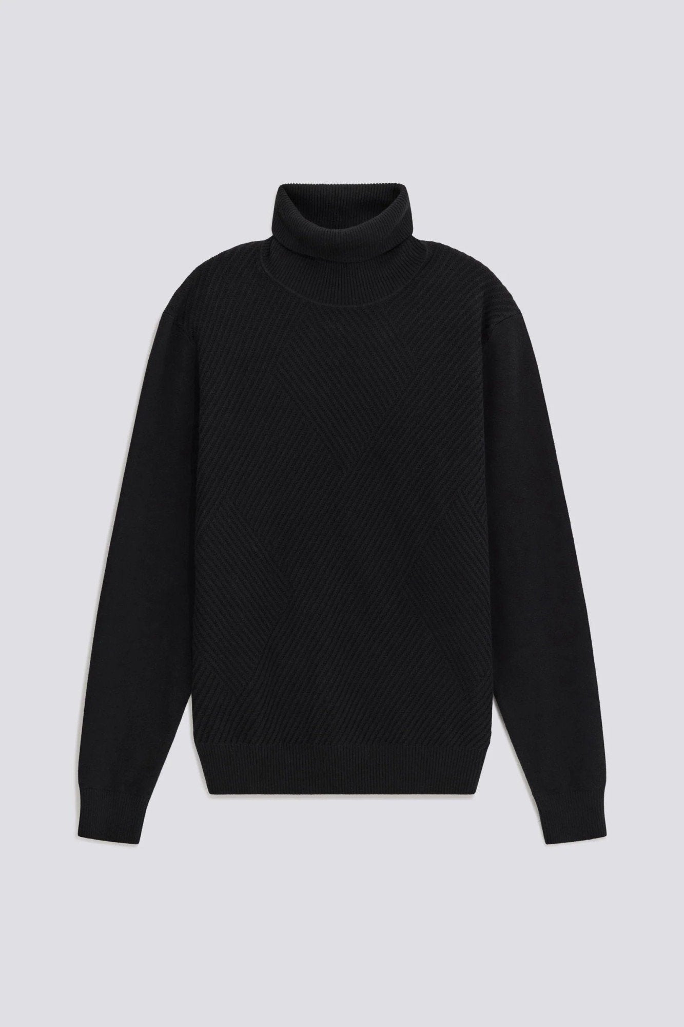 Crew neck sweater with a regular fit made from fine 12-gauge cotton-wool yarn, featuring a geometric relief pattern on the front that adds character and structure. A versatile and sophisticated piece finished with a metal logo plaque on the back neckline. Perfect to wear with denim or chinos for a clean yet distinctive look.