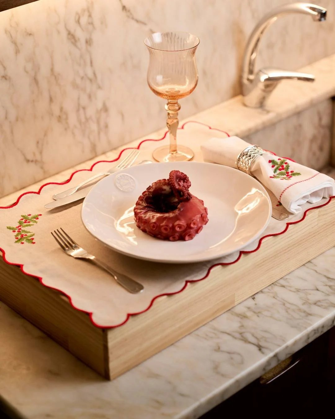 Add a touch of festive charm to your table with the Lili Placemat, now in a wavy rectangular version. Decorated with tiny holly embroidered on each stitch and an elegant red border, this placemat is the perfect choice for a refined Christmas table. Crafted from high-quality linen and cotton, it offers sophistication and durability.