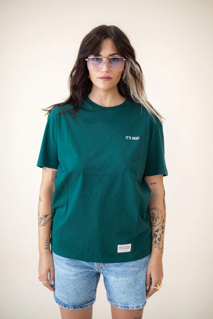 220g organic cotton T-shirt made in Portugal (exclusively for IT''''S OKAY). Made with organic combed cotton and eco-friendly fabric softener. Embroidery on front and back, outside label. Wear it with pride!