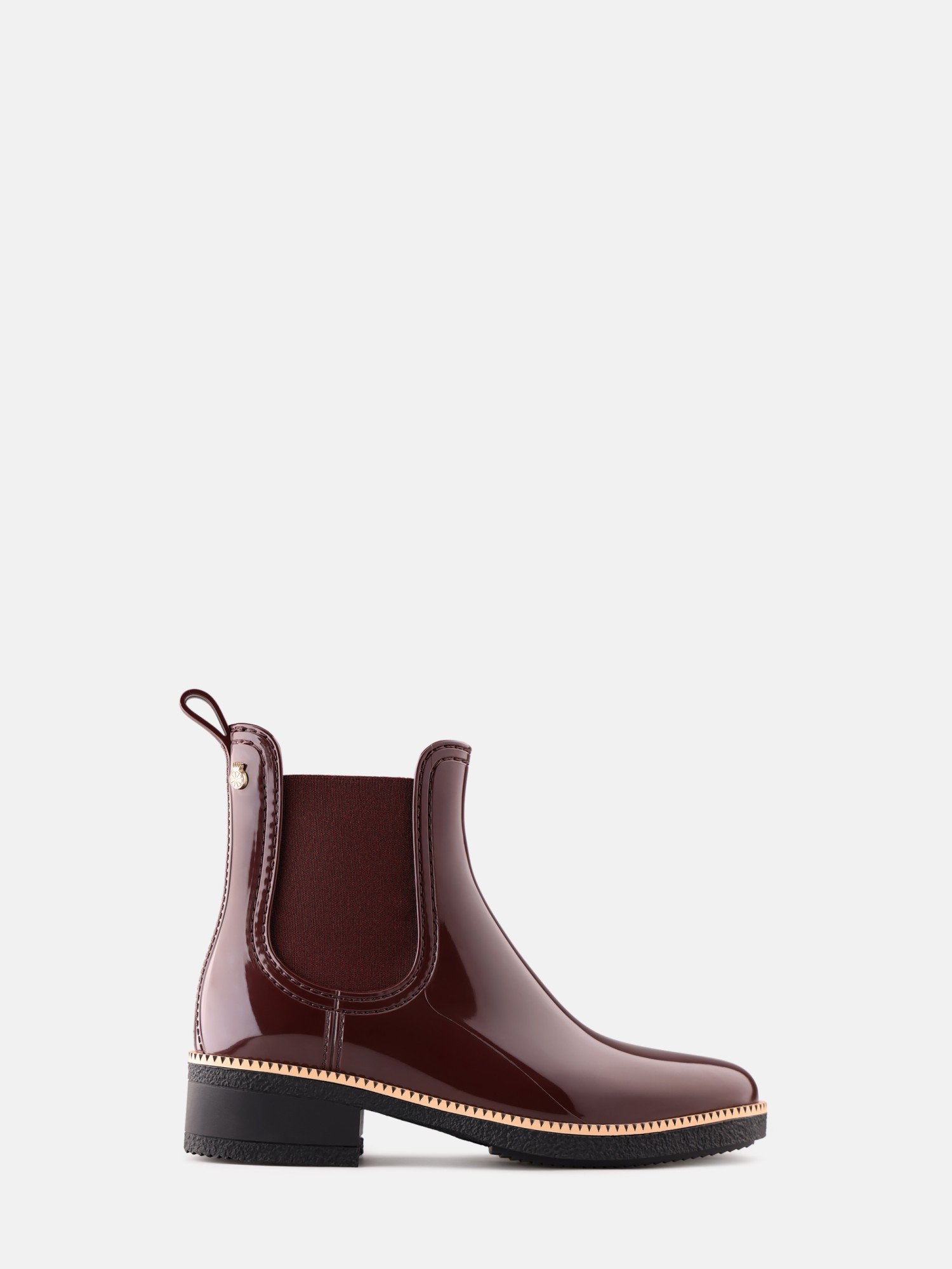 A glossy bordeaux Chelsea boot with heel that enriches soft toned outfits. Their classic design elevates the elegance of your stance and their breathable insole ensures your everyday comfort. Team with grey knits or patterned skirts for an original statement. Crafted in Portugal with high quality vegan materials, in a factory that runs entirely on solar panels and clean energy.