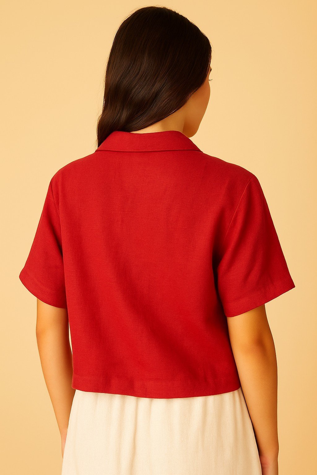 Ideal for styling with high-waisted trousers, flowy skirts, or tailored shorts, this piece blends versatility with an understated sense of luxury.