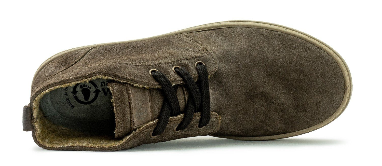 The upper part of these winter boots is made of suede leather and the sole is 100% natural rubber. The inner part of these eco-friendly boots for men is lined with wool, which makes them ideal for cold days.