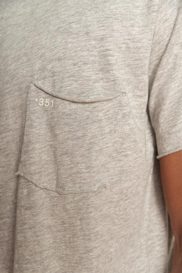 This is a bestseller and a personal favorite of ours. It was one of our first designs for the brand. This t-shirt is cut from Malha Flamê, a fabric that offers a textured feel to the piece. +351 printed on the front pocket in black.