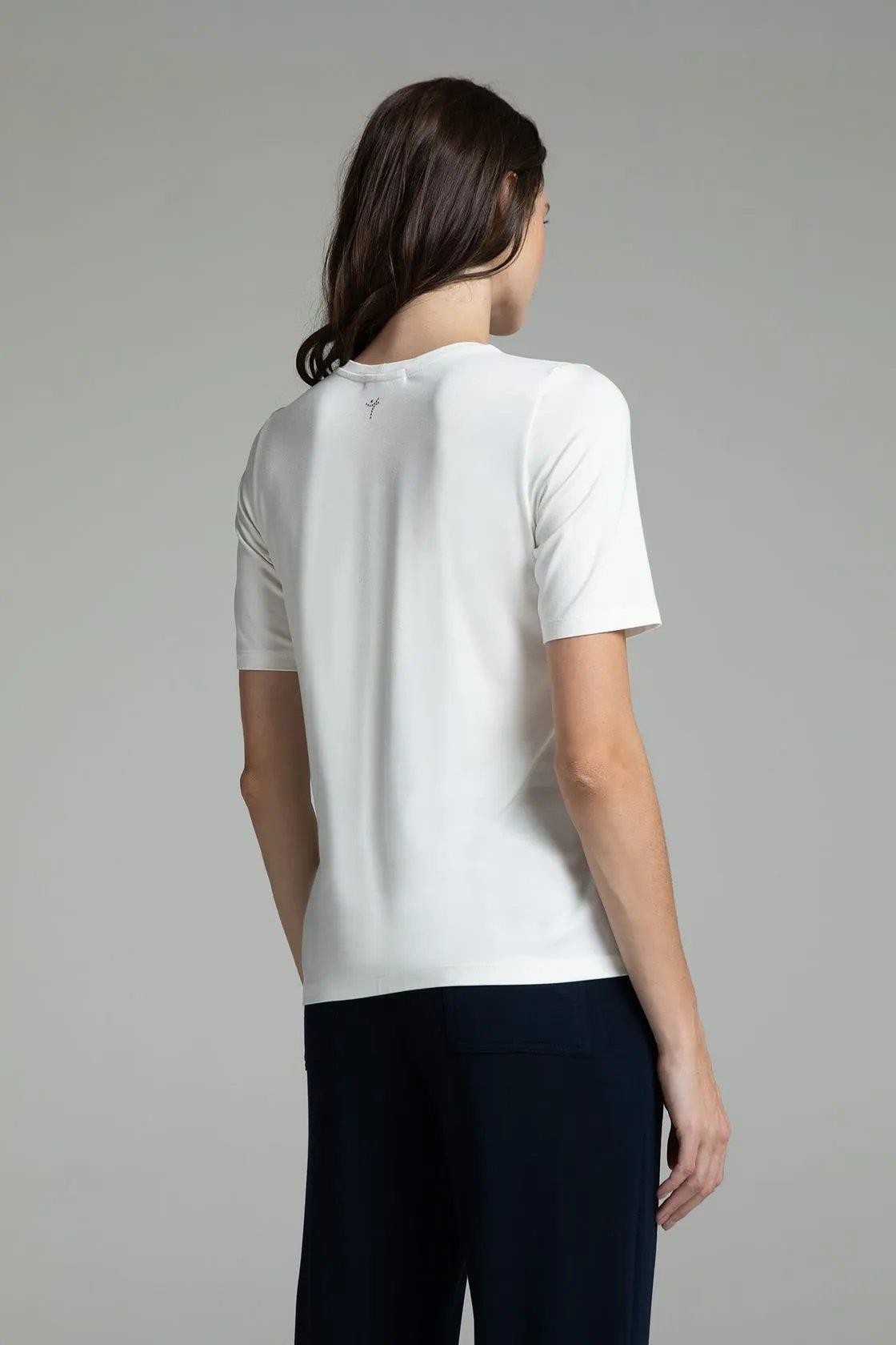 Loose fit, round neck, short sleeves with slightly offset armholes.