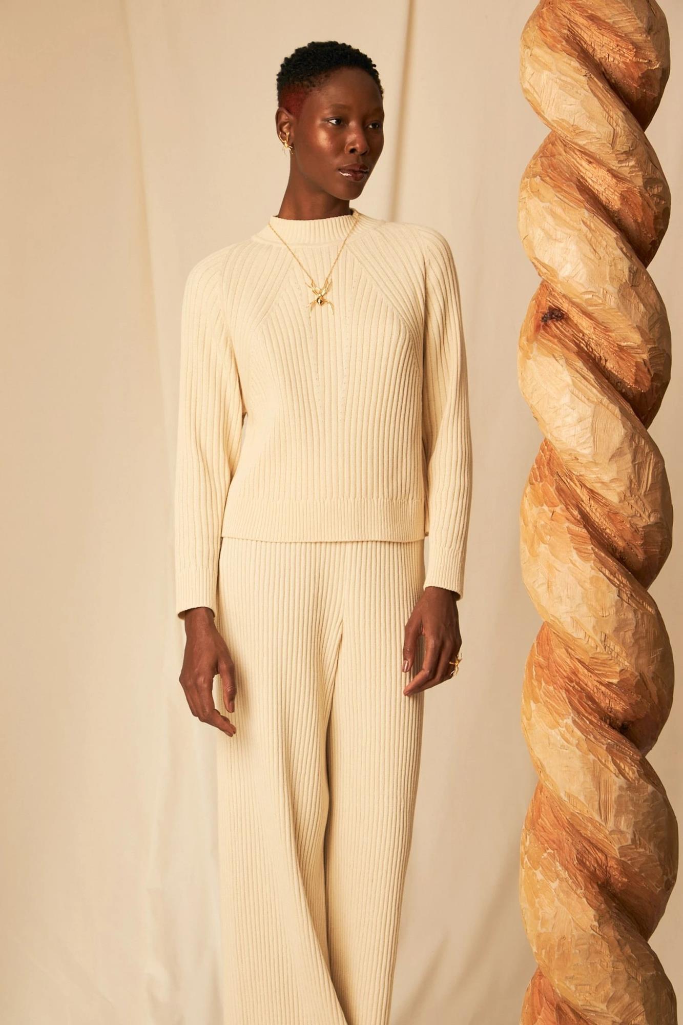 This creation by Flavia Aranha is knitted in 100% organic cotton, with fibres grown in Paraíba and the fruits of family farming in the region.