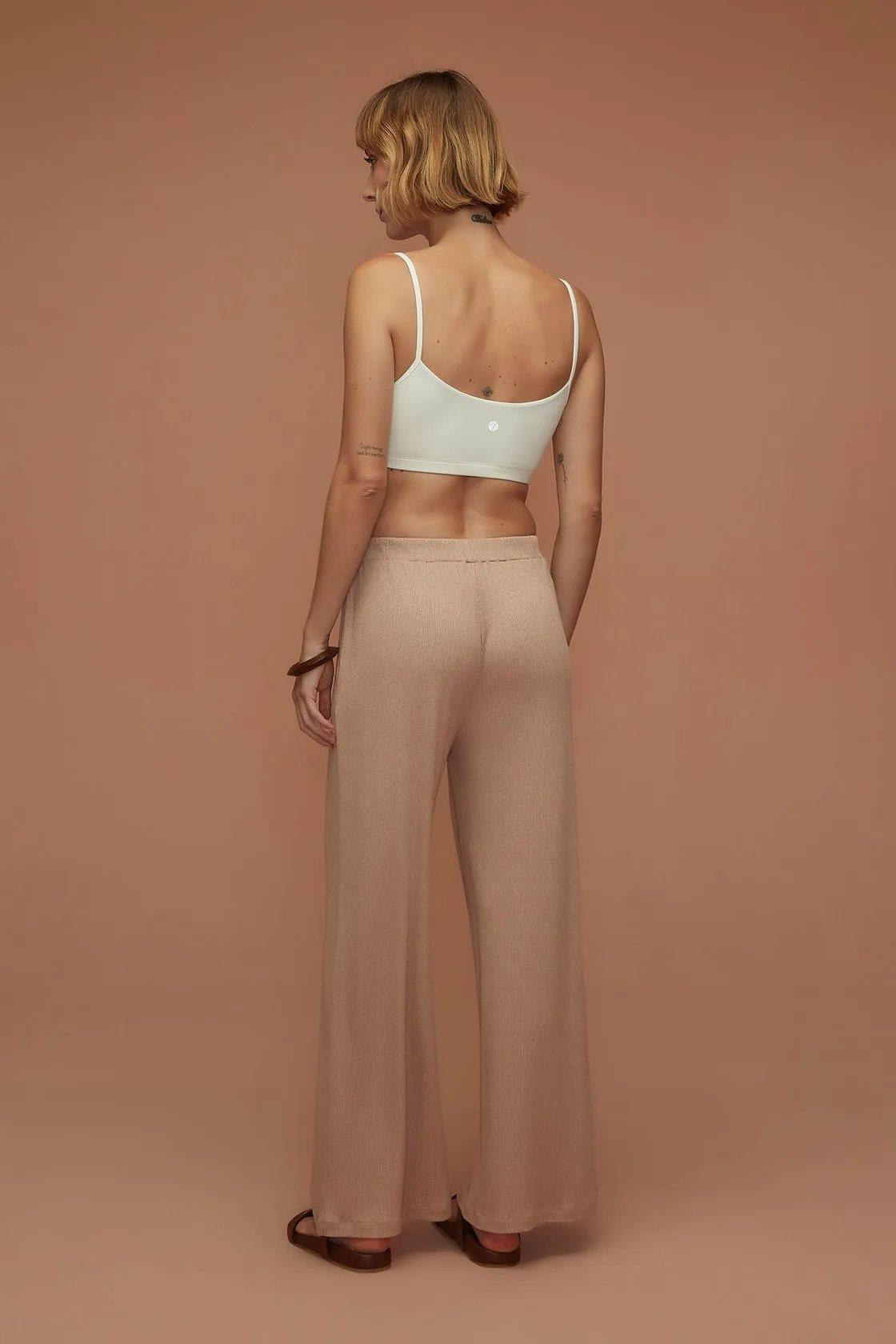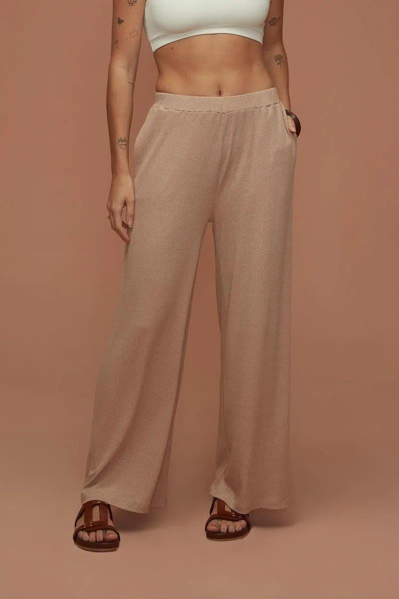 Mila Wide Brown Ribbed Trousers - Yogini