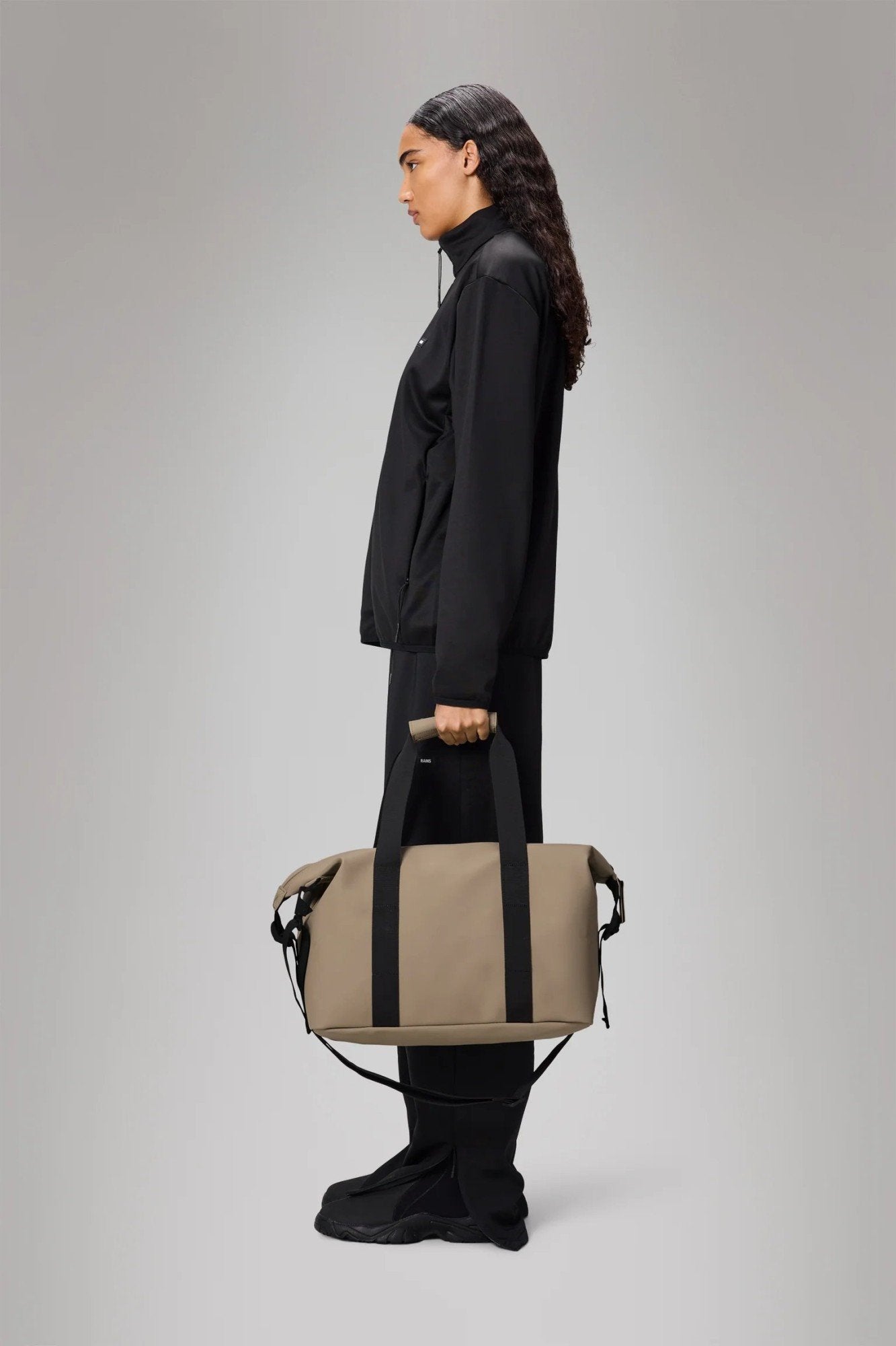 Hilo Weekend Bag Small is constructed from Rains’ signature waterproof PU fabric, engineered for carrying strength, durability, and a smooth feel.