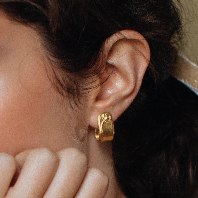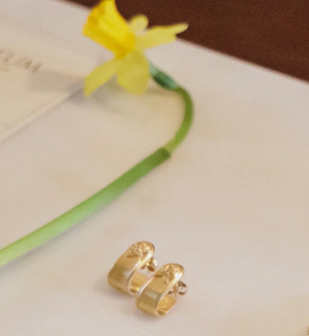 Oval hoops with engraved narcissus. Super comfortable, they adapt very well to the ear.
