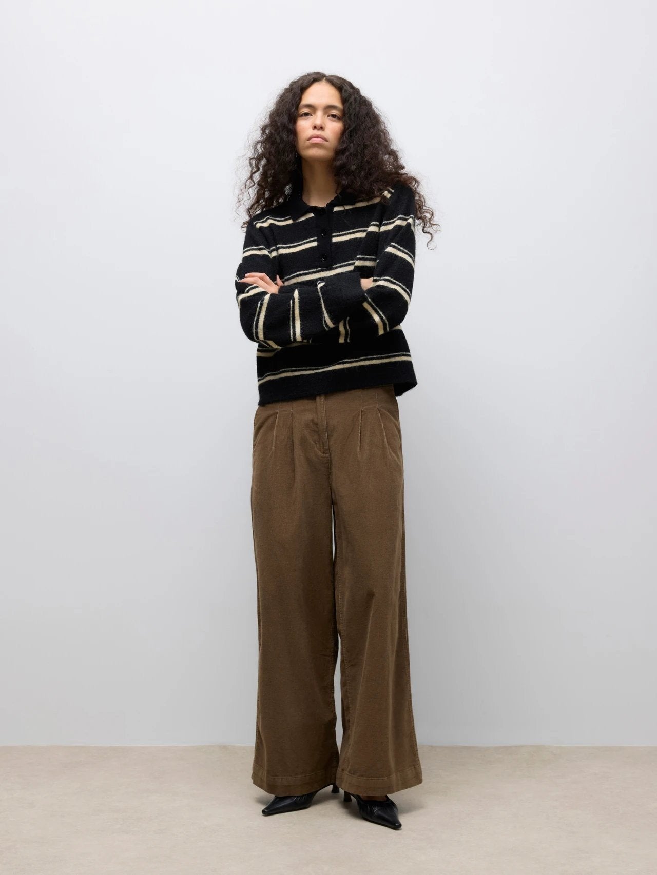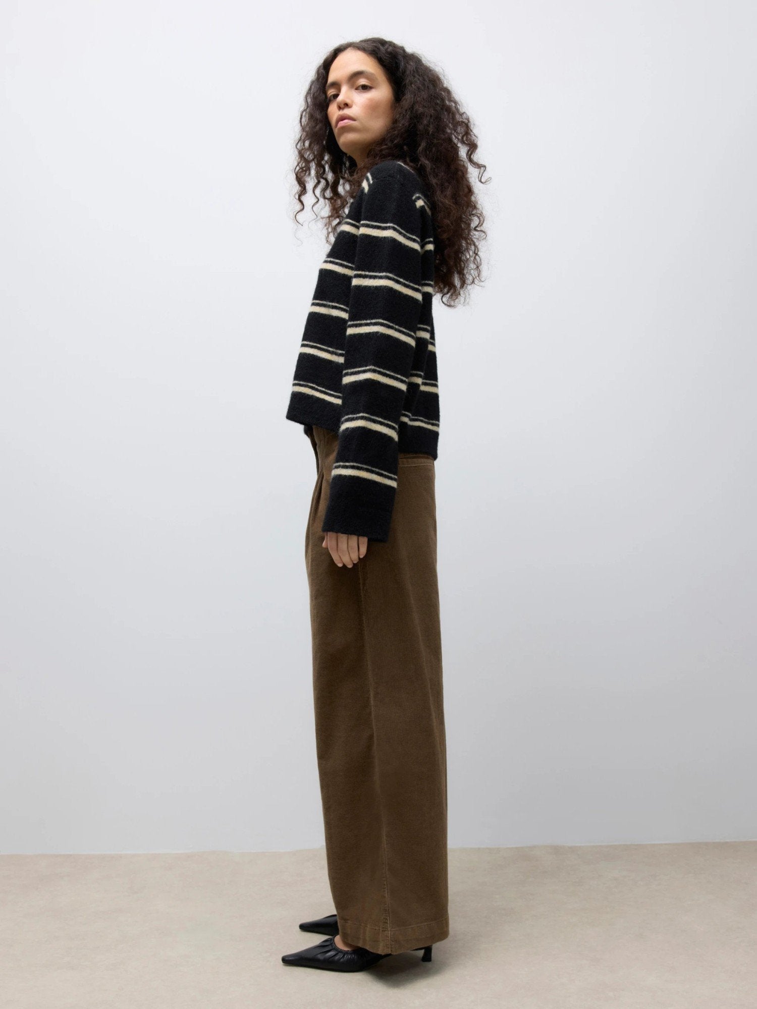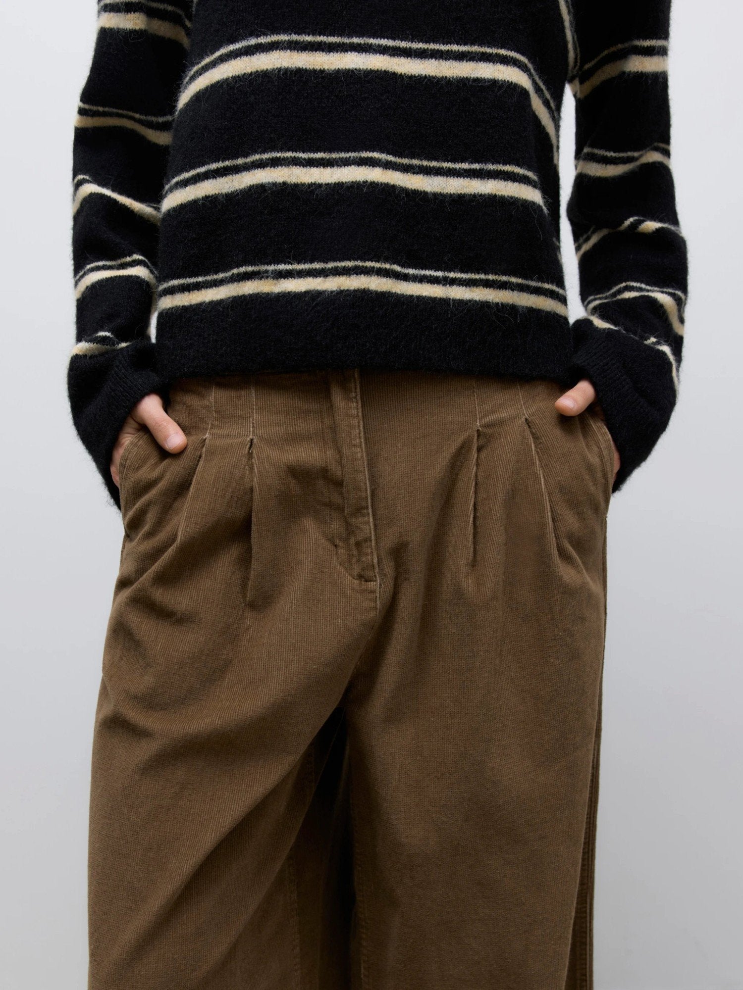 Organic cotton corduroy — architectural wide flow — grounded warmth