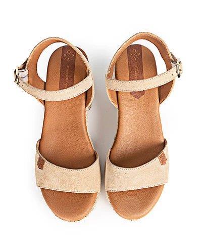 Arale Jute heel Beige split leather with buckle - Popa