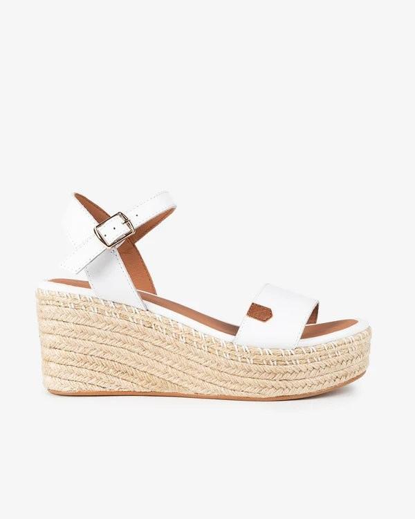The Arambol Leather Low Wedge Sandals in White offer a fresh and minimalist take on everyday elegance. With a clean white leather upper, natural jute wedge sole and an adjustable buckle strap, this design strikes the perfect balance between style and functionality. Ideal for sunny days, they add a Mediterranean flair to your summer wardrobe.