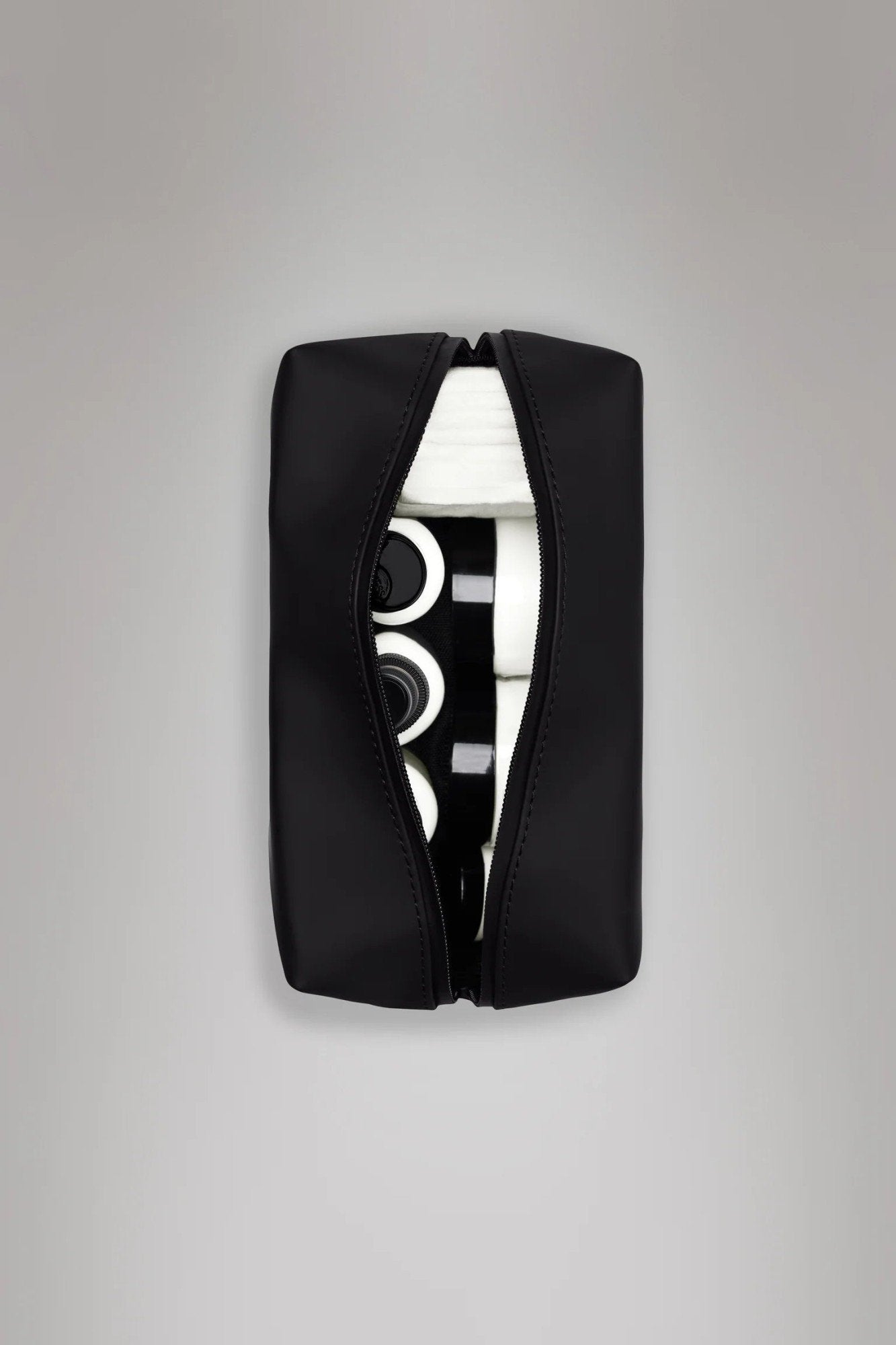 Wash Bag Small is cut in Rains’ signature waterproof PU fabric, engineered for carrying strength, durability, and a smooth feel.
