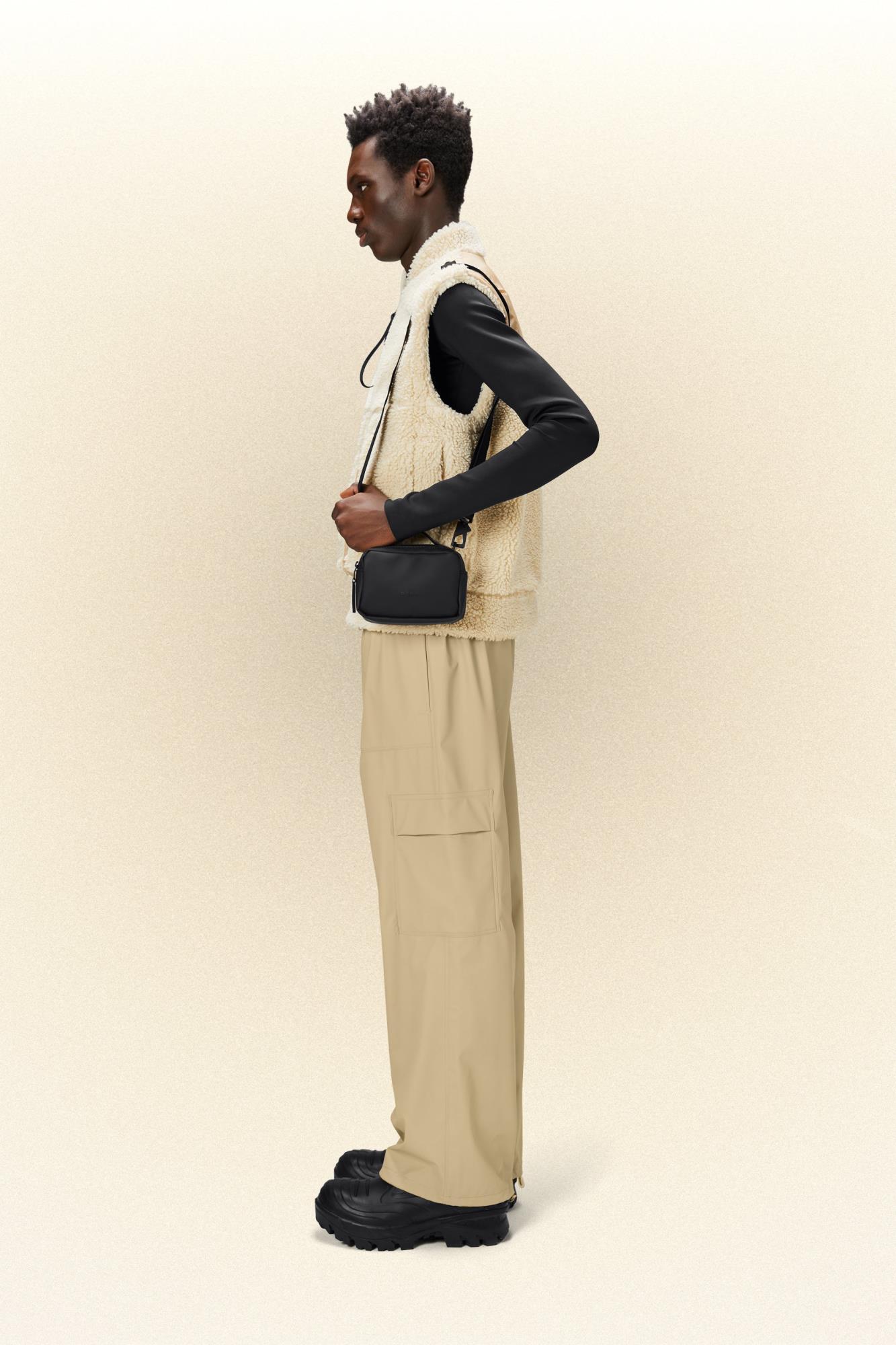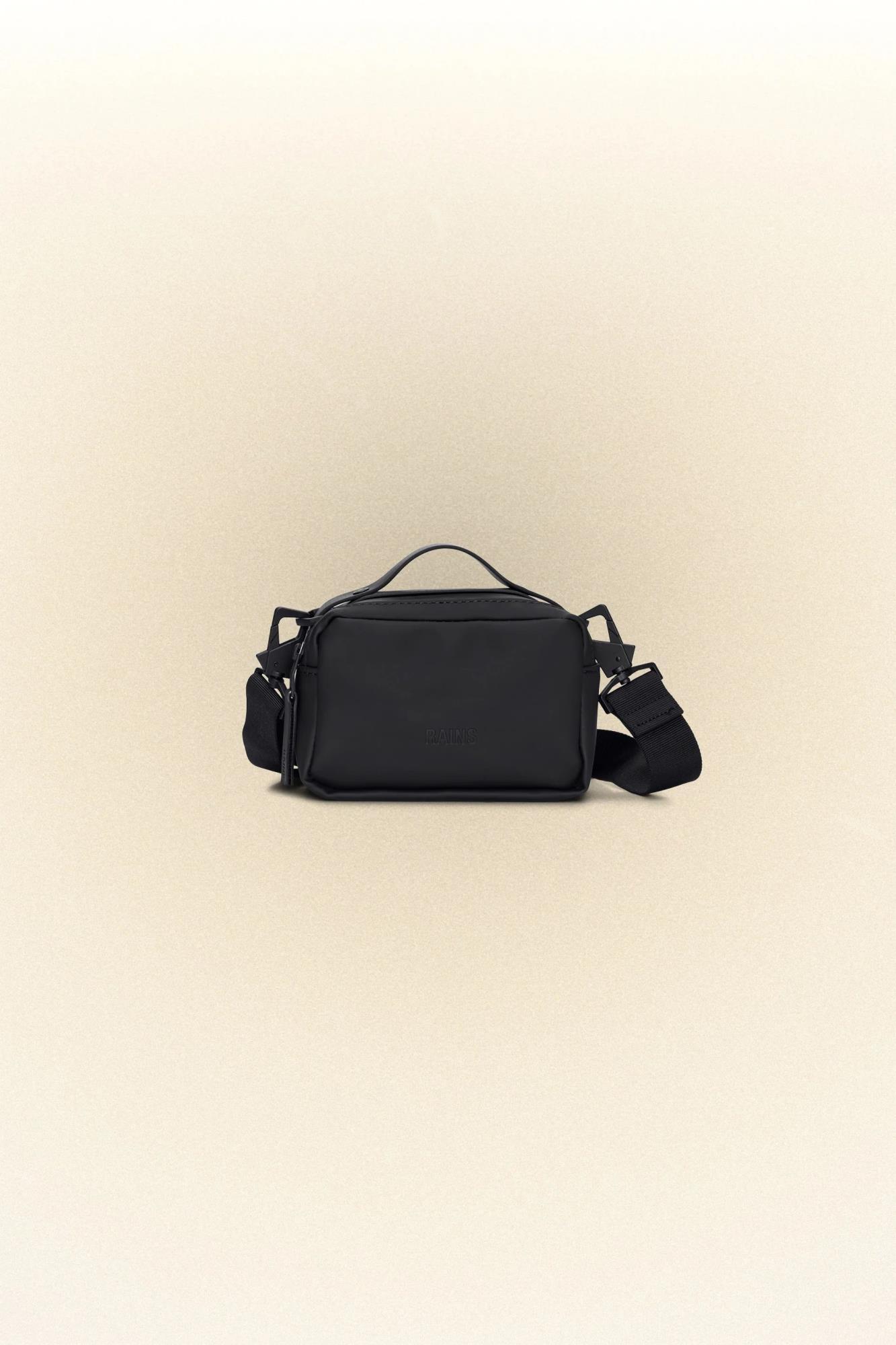 Box Bag Micro is cut in Rains’ signature waterproof PU fabric, engineered for carrying strength, durability, and a smooth feel.
