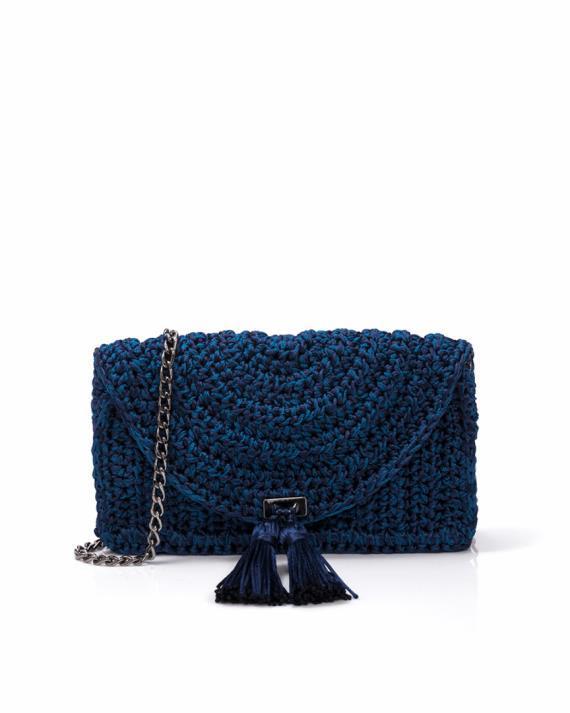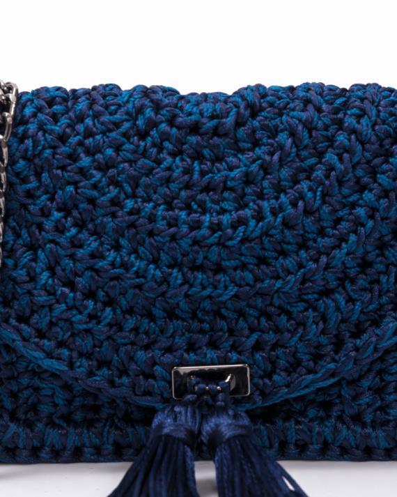 Handmade bag with satin thread, magnet closure on the inside, details of pompoms and chain strap. Signature Catarina Mina details are displayed on this stylish bag.