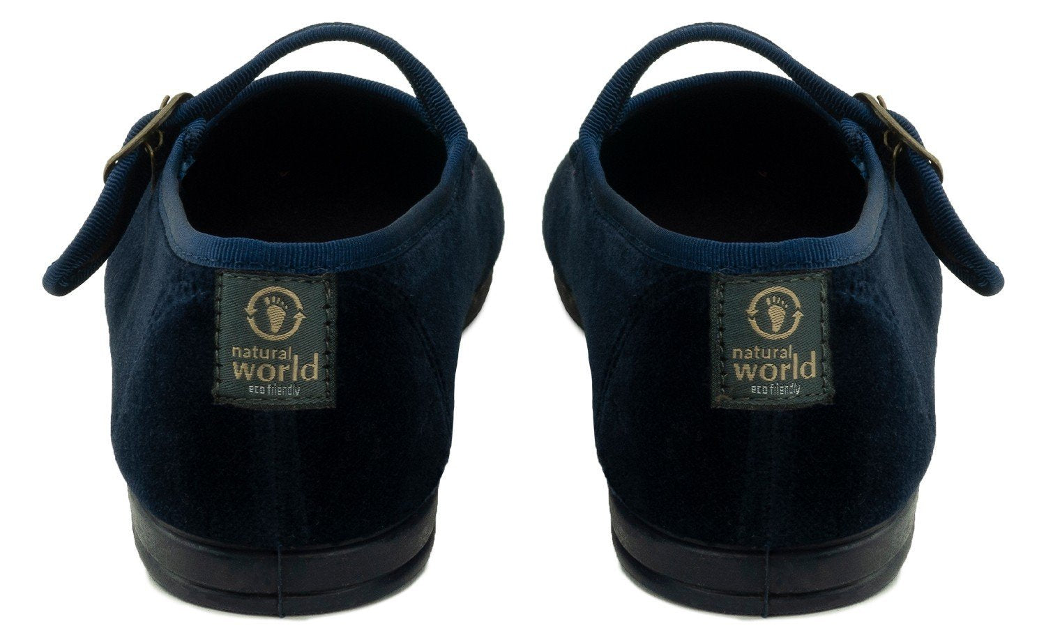 The exterior of these Natural World Eco ballet flats is made of soft velvet with a flexible, non-slip rubber sole.