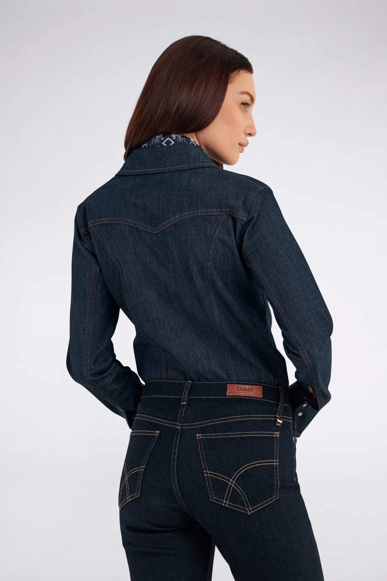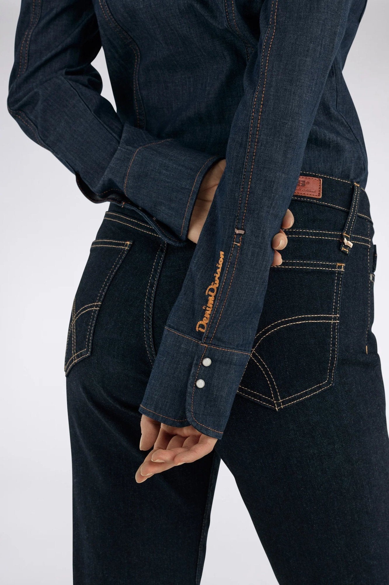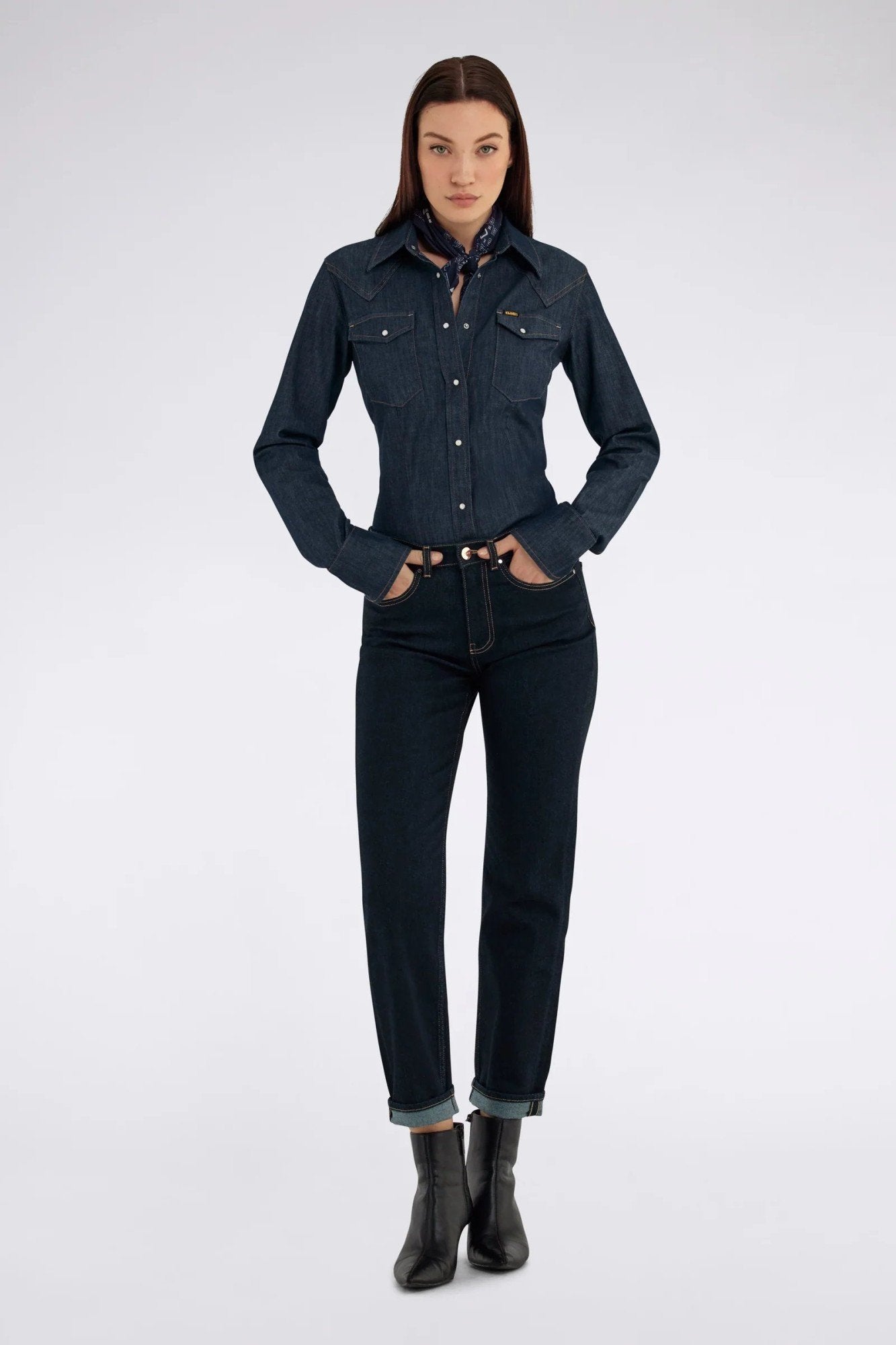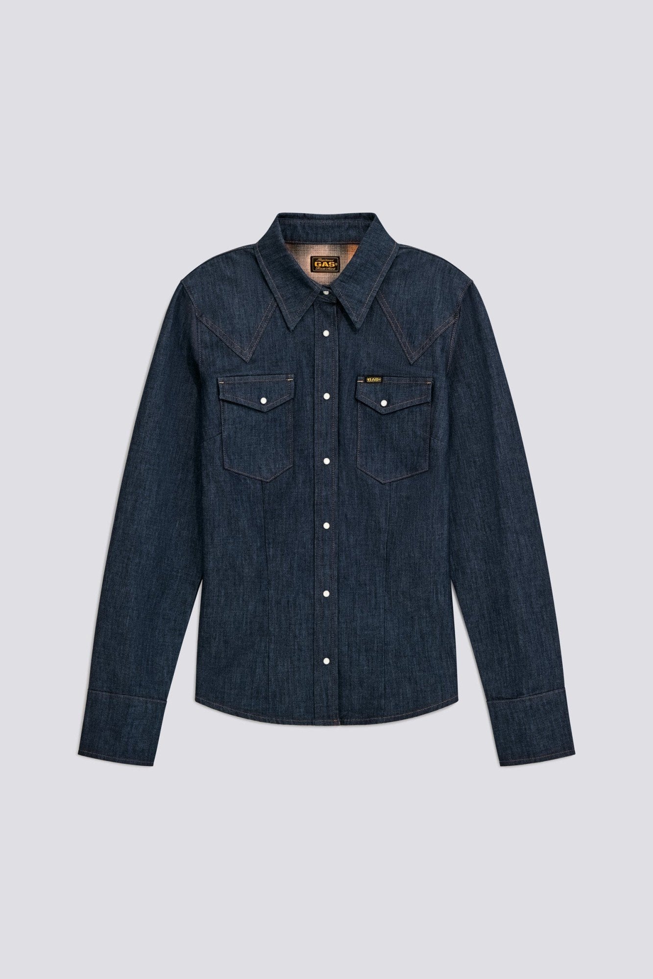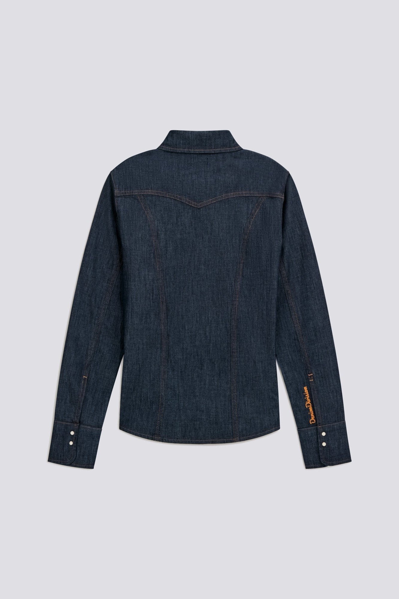 The classic denim shirt with a bold twist. Slim fit, contrast stitching, snap buttons, and flap pockets: every detail is designed to give character to a timeless piece. The rinse wash keeps the color intense, while the contrast stitching and snap buttons add a utility touch with a contemporary flair. Perfect to wear with high-waisted jeans or denim skirts for a total look that doesn''t go unnoticed.
