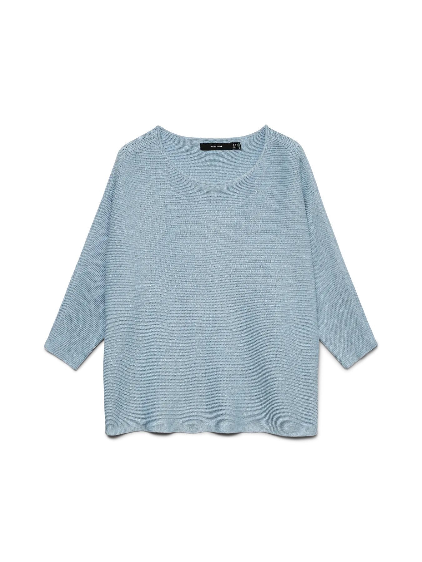 Flachstrick-Bluse mit Fledermausärmeln und langen Ärmeln