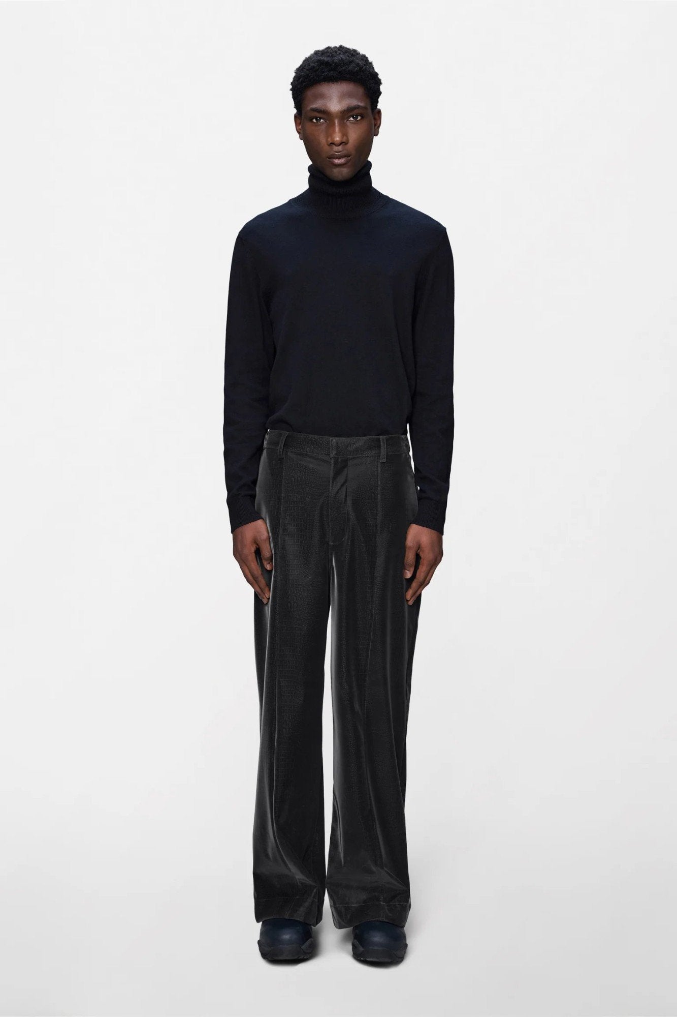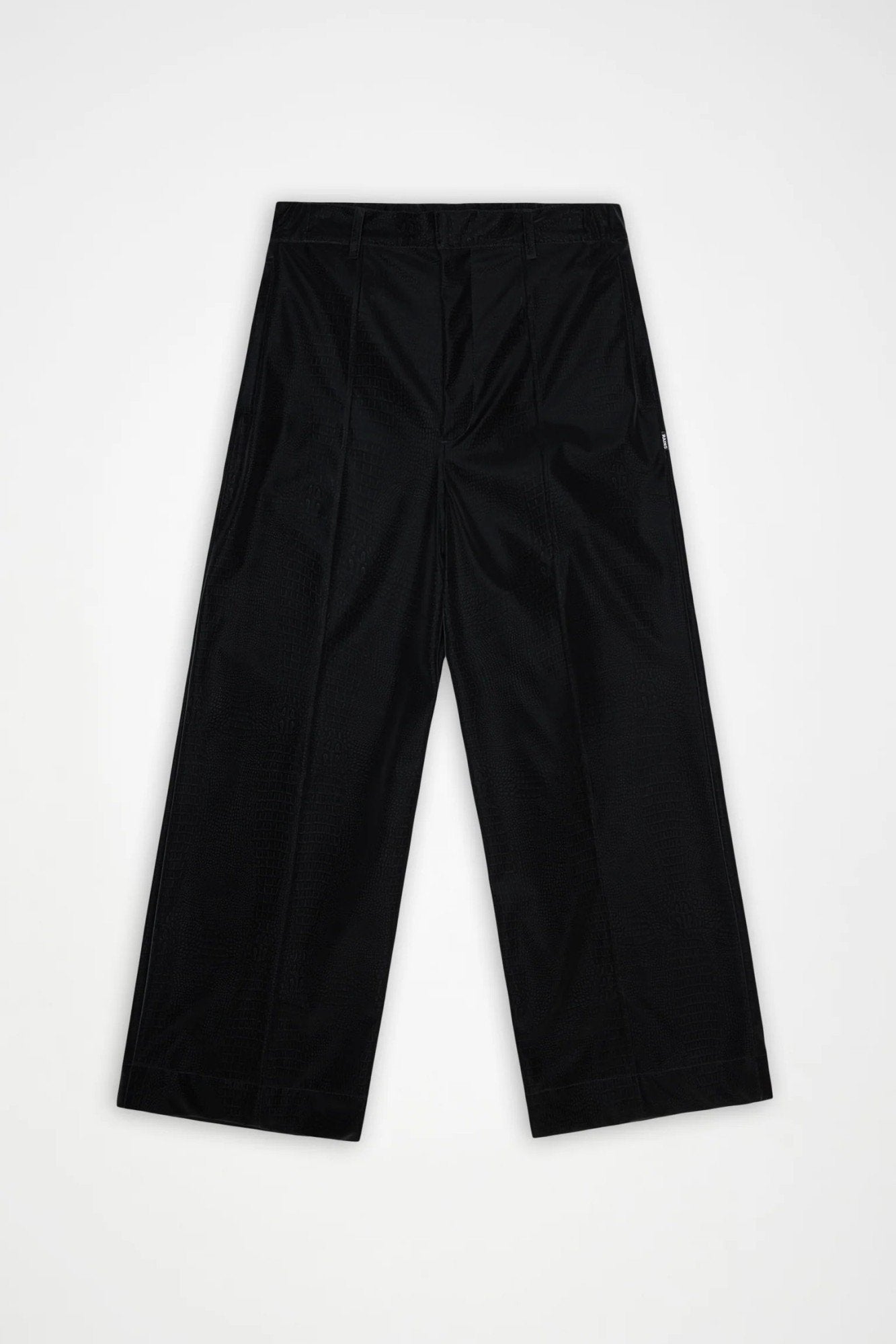 Designed for unpredictable city weather, these Trench Coat Pants feature a zip fly, elasticated waistband, and traditional belt loops. Welted side pockets and simulated press folds down the front of each leg nod to traditional tailoring. The fabric choice adds a modern edge. Pair them with the Trench Coat for a bold, coordinated statement.