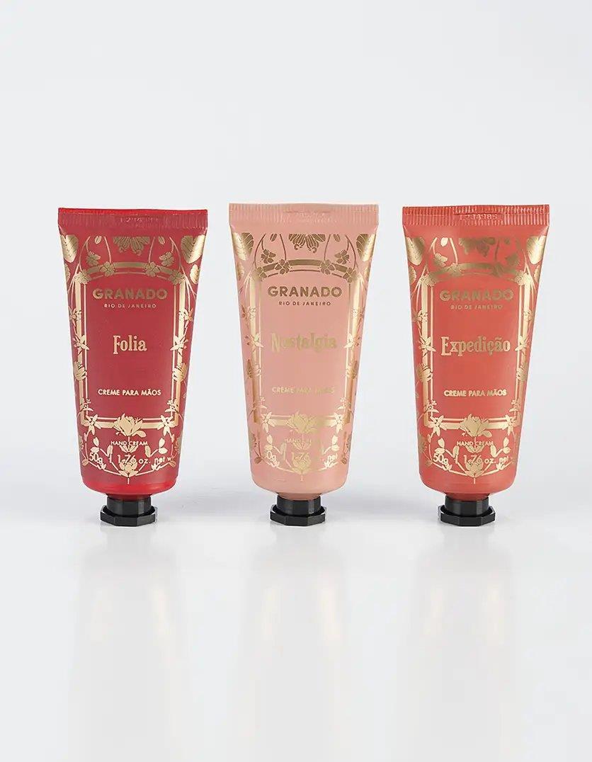 The trio includes three hand cream options in the Folia, Expedição and Nostalgia fragrances.